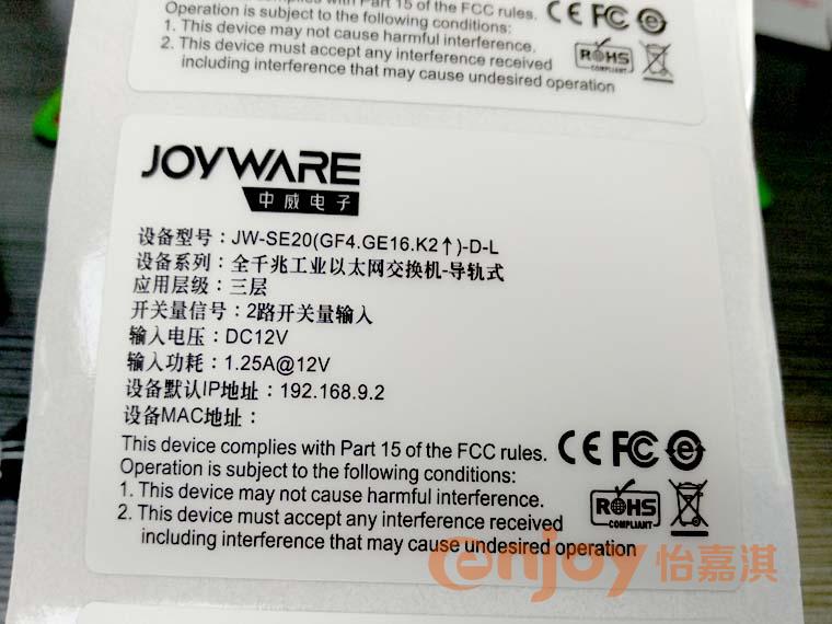 工業(yè)電器標(biāo)簽貼紙材質(zhì):具有上墨效果佳,抗刮、耐磨,粘貼牢固等特點(diǎn);