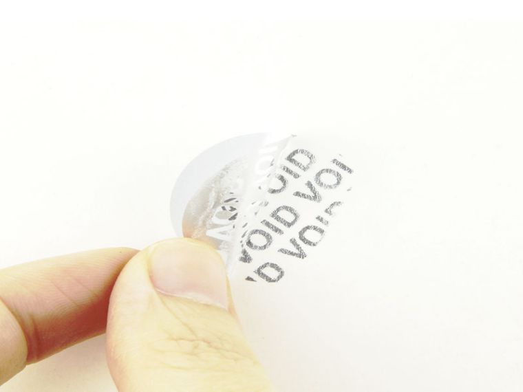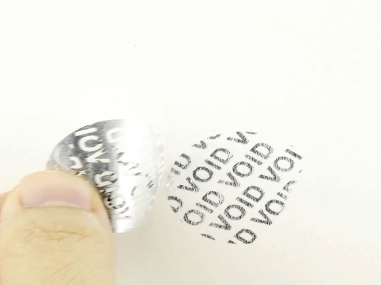 VOID防偽標(biāo)簽特性:揭開(kāi)標(biāo)簽后,分離出預(yù)先設(shè)計(jì)的圖案或文字(如“VOID”、“撕毀無(wú)效”、“已開(kāi)封”或客戶指定的其它圖案或文字)且無(wú)法復(fù)原;