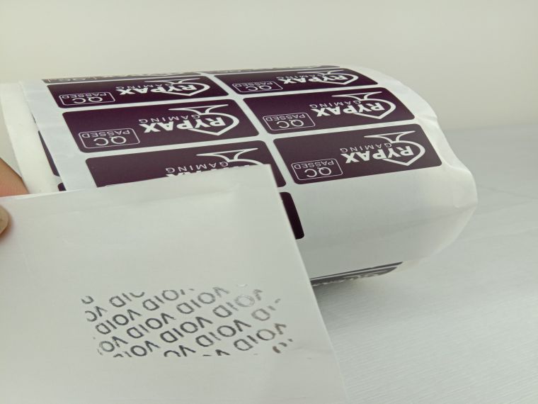 VOID防偽標(biāo)簽特質(zhì):揭開(kāi)標(biāo)簽后,被貼物上會(huì)留下預(yù)先設(shè)定好的文字、圖案、標(biāo)識(shí)等內(nèi)容,與標(biāo)簽的破壞部分呈陰陽(yáng)對(duì)稱(chēng);